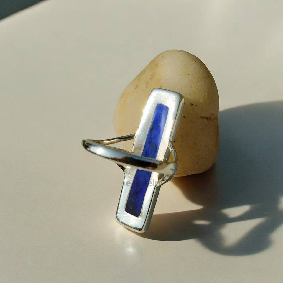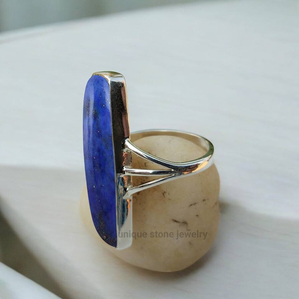 Handmade 925 Sterling Silver Ring Natural Lapis Lazuli Gemstone Beautiful Statement Jewelry Featuring Bezel Setting Inlay