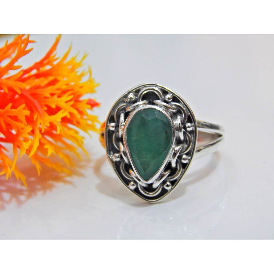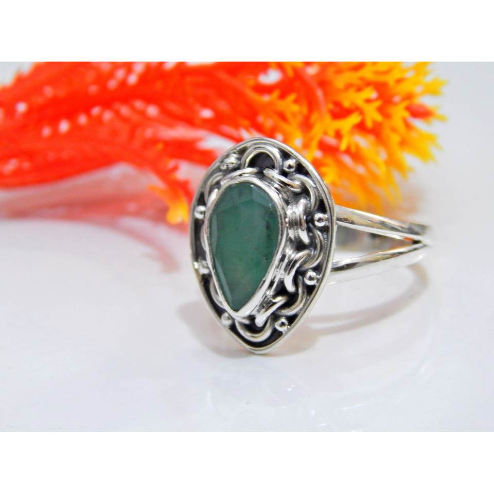 Handmade 925 Sterling Silver Wedding Ring with Natural Emerald Gemstone Designer Fine Jewelry for Mom