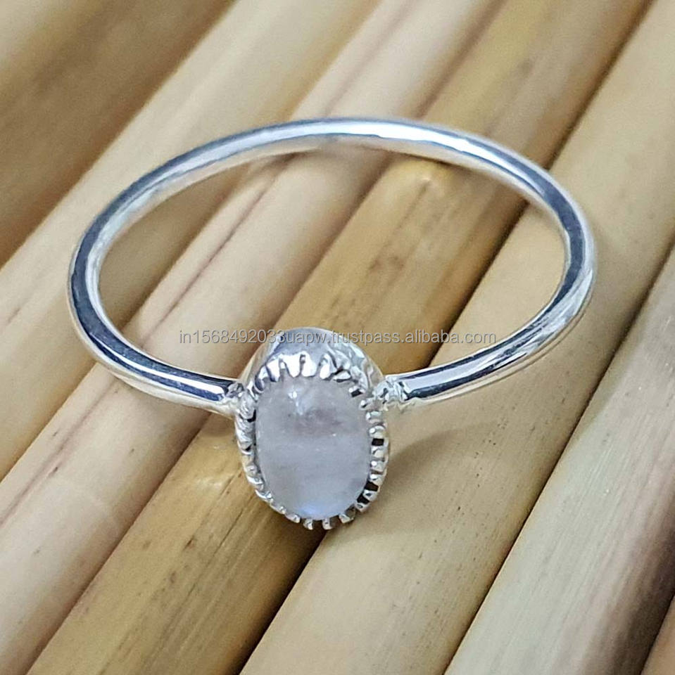 Handmade 925 Sterling Silver Ring with Dainty Rainbow Moonstone Minimalist Oval Shape Original Direct Factory Supply for Wedding