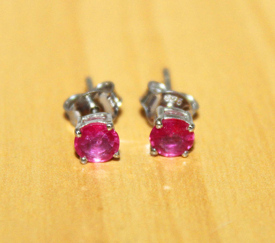 Handmade 925 Sterling Silver Ruby Stud Earrings, Natural Round Cut Gemstone Jewelry By Memoria Jewels For Wholesale