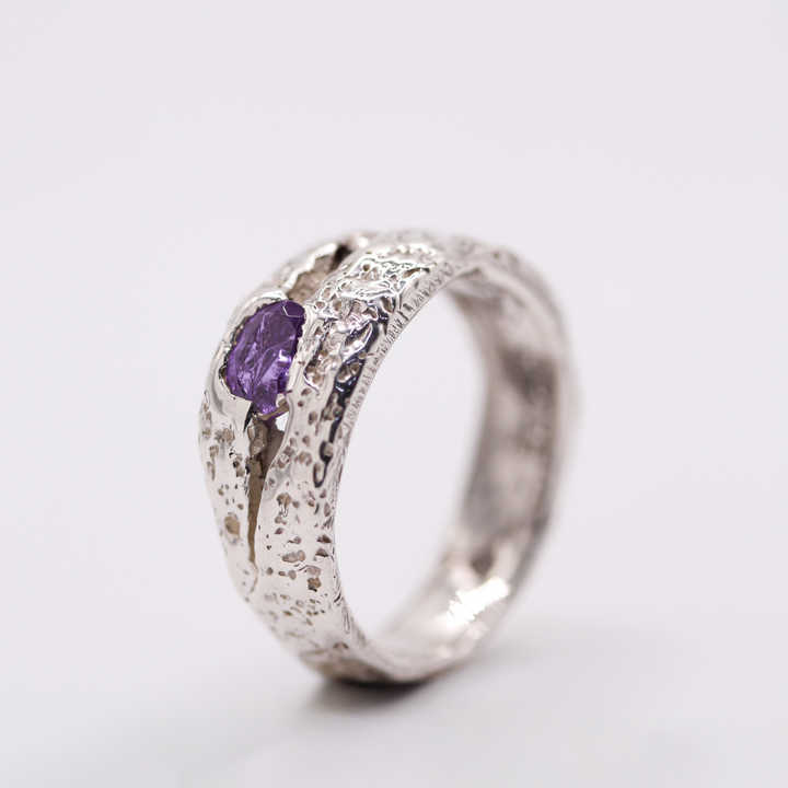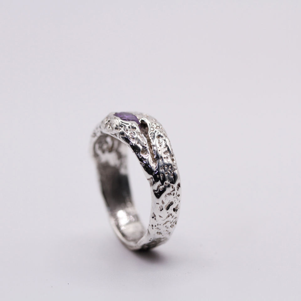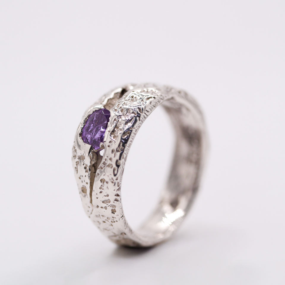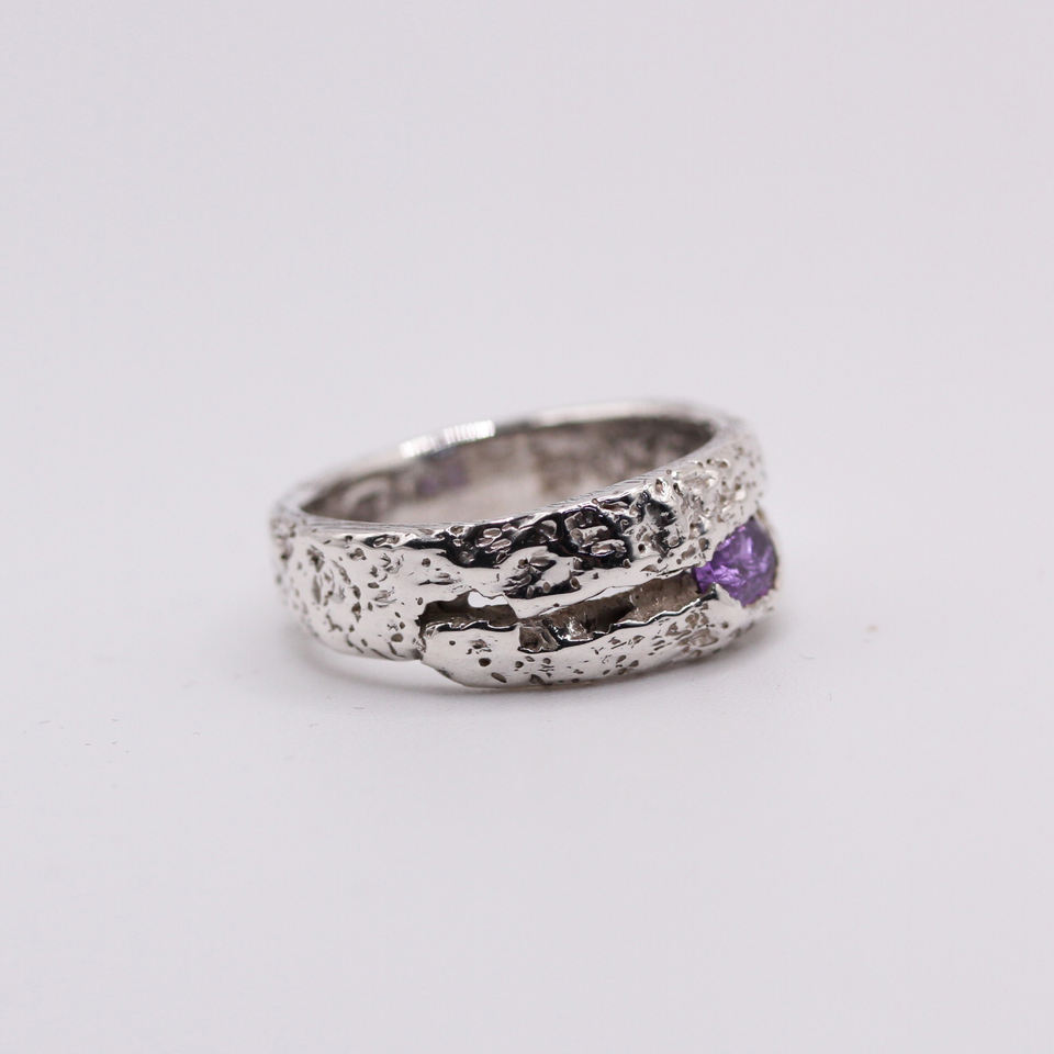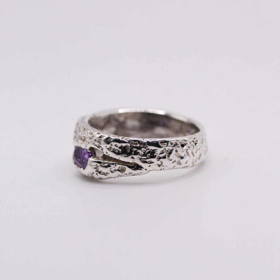 Handmade 925 Sterling Silver Sand Cast Amethyst Branch Ring Organic Unisex Minimalist Engagement Anniversary Wedding Band Made