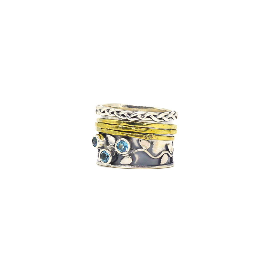 Handmade 925 Sterling Silver Spinner Ring Turquoise Gem Stone Triple Tone Bezel Setting Direct Indian Manufacturer-for Weddings