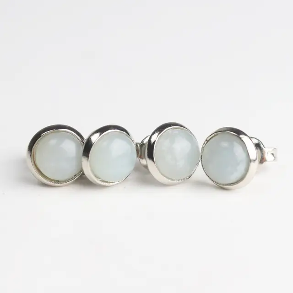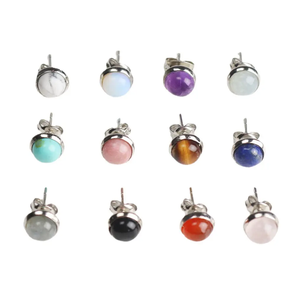 Handmade 925 Sterling Silver Stud Earring Natural Mix Gems 8mm Round Shape For Wholesale Price