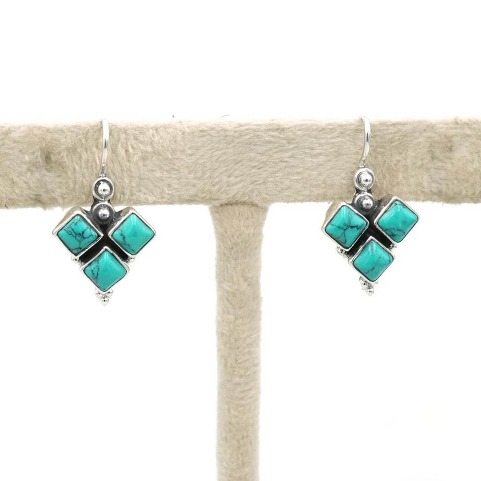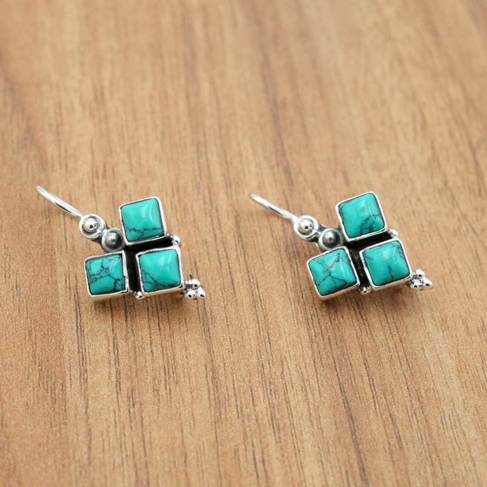 Handmade 925 Sterling Silver Turquoise Crystal Earrings Natural Blue Gemstones Wedding Jewelry Gift