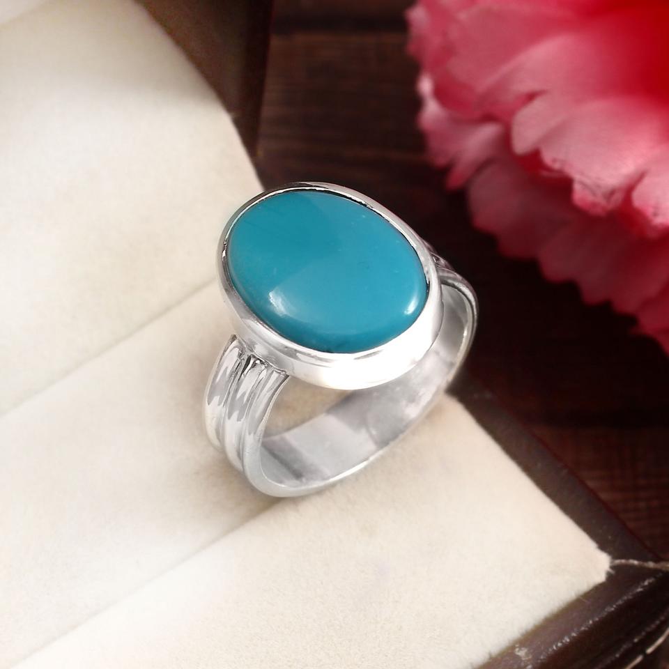 Handmade 925 Sterling Silver Firoza Turquoise Dyed Ring for Women Classic Eternity Boho Style Perfect Birthday Anniversary Gift