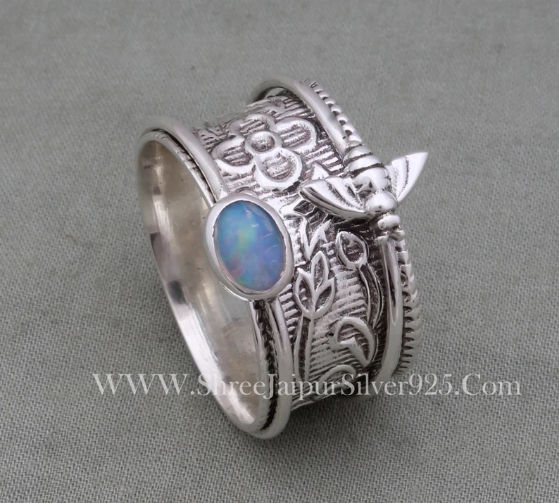 Handmade 925 Sterling Silver Vintage Elephant Spinner Ring Round Solid Band for Unisex Anxiety Fidget Party Wedding Gifts
