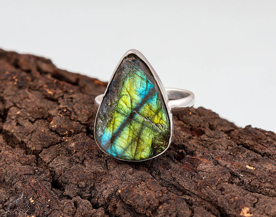 Handmade 925 Sterling Silver Women's Wedding Ring with Raw Labradorite Crystal Gemstone Party Jewelry Gift Wholesale