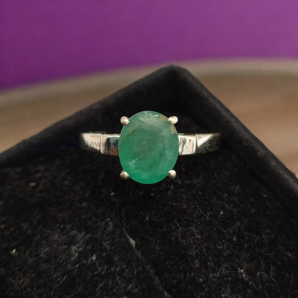 Handmade 925 Sterling Silver Women's Ring Natural Emerald Gemstone with 18K Gold Plating Statement Oval Cut Diamond Shape