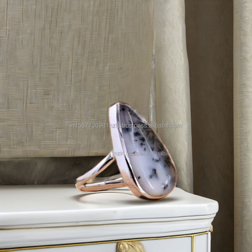 Handmade 925 Sterling Silver Women's Love Ring Natural Dendrite Opal Gemstone Set in Gold Plated Band for Engagement
