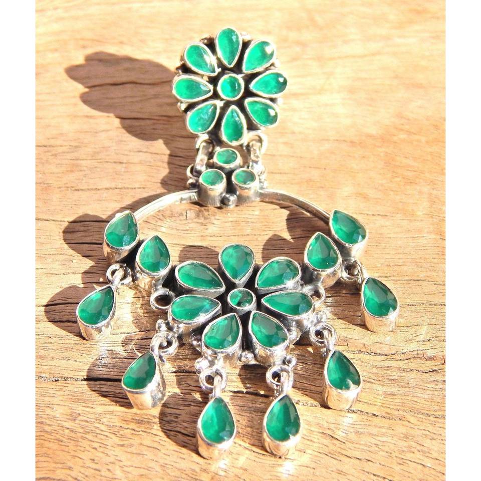 Handmade 925k Sterling Silver Earring with Green Onyx Gemstone Unique Jewelry Gift for Men/Women E0913-GS