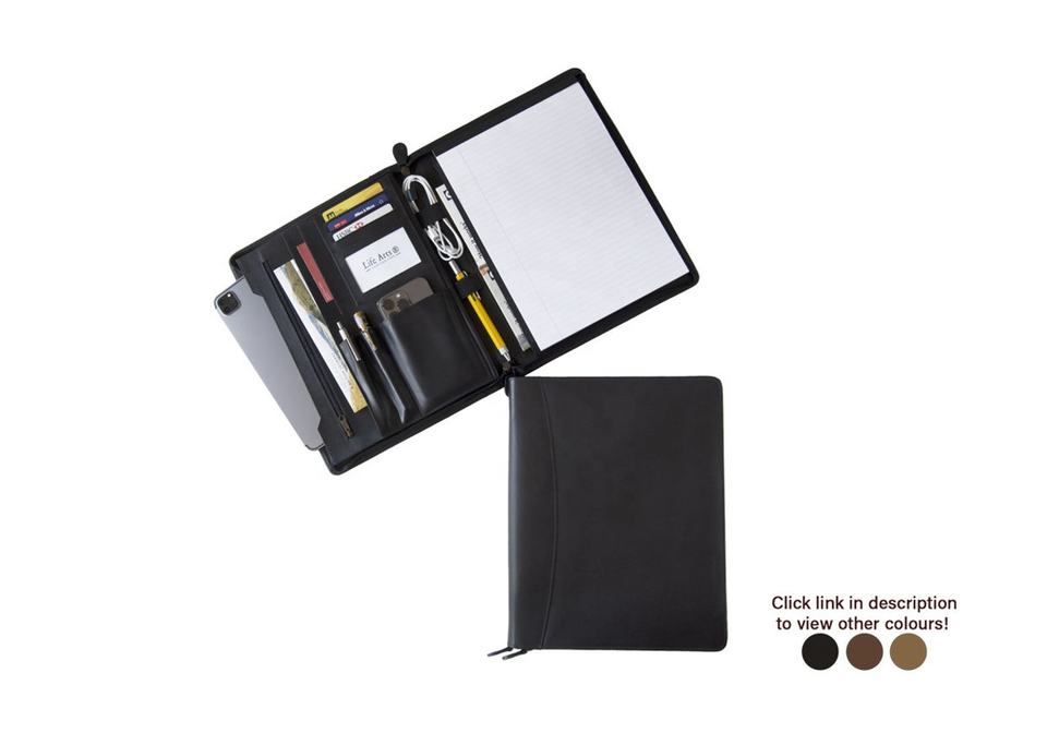 Handmade A4 Black Genuine Leather Padfolio Folder Organizer 33cm X 26cm X 2cm Personalisable LPA-0082