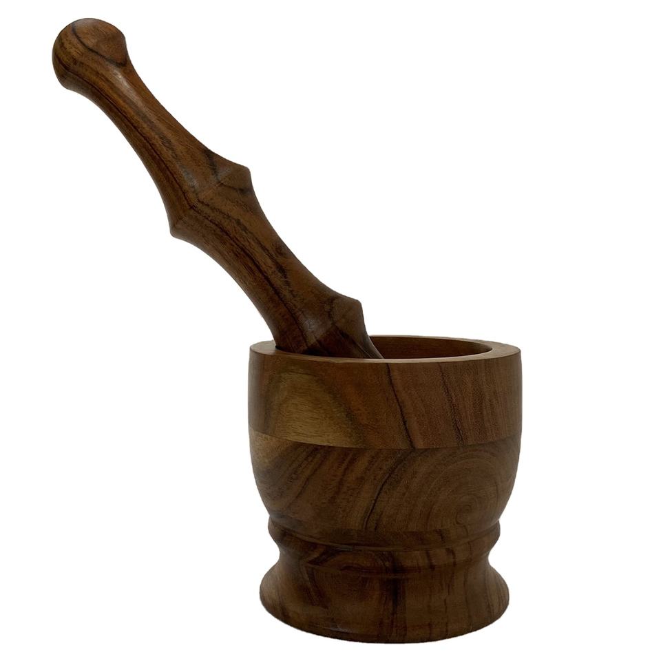 Handmade Acacia Wood Mortar and Pestle Set for Grinding Herbs and Spices Ideal for Kitchen Use and Export Wholesale