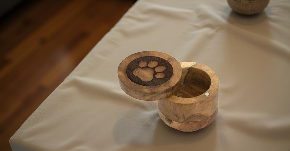 Handmade Acacia Wood Pet Urn ODM OEM 3.5 X 2.5 Inch Engraved Wooden Keepsake Ashes Burial Cremation Memorial Box for Dogs Cats