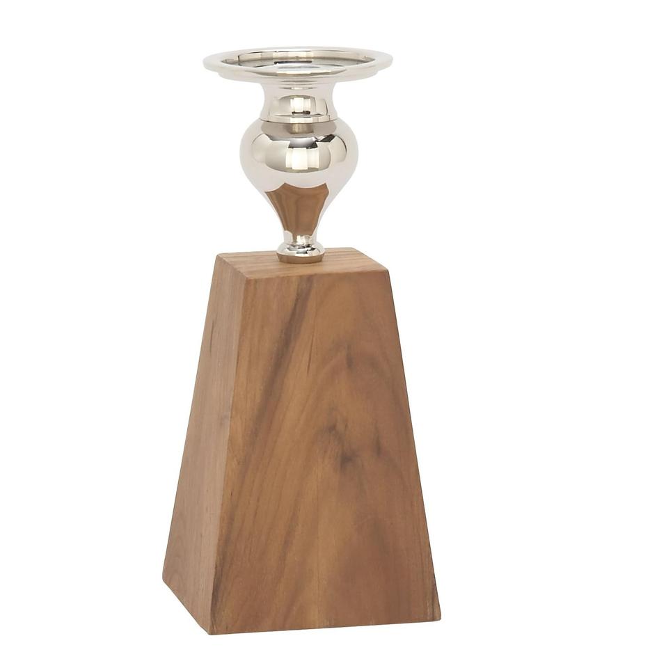 Handmade Acacia Wood Silver Aluminum Taper Candle Holders Set for Dining Table Christmas Home Decor Accents Mantel Stand