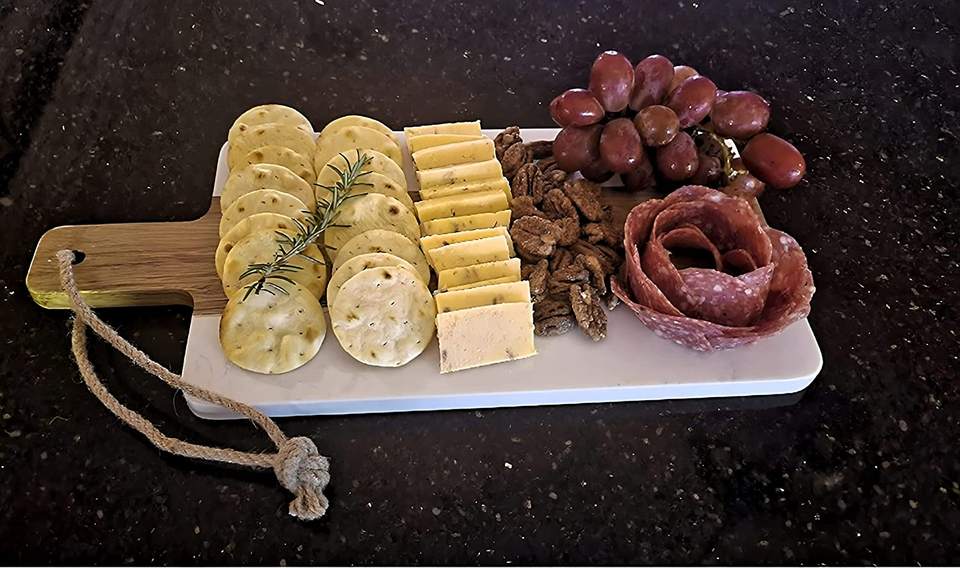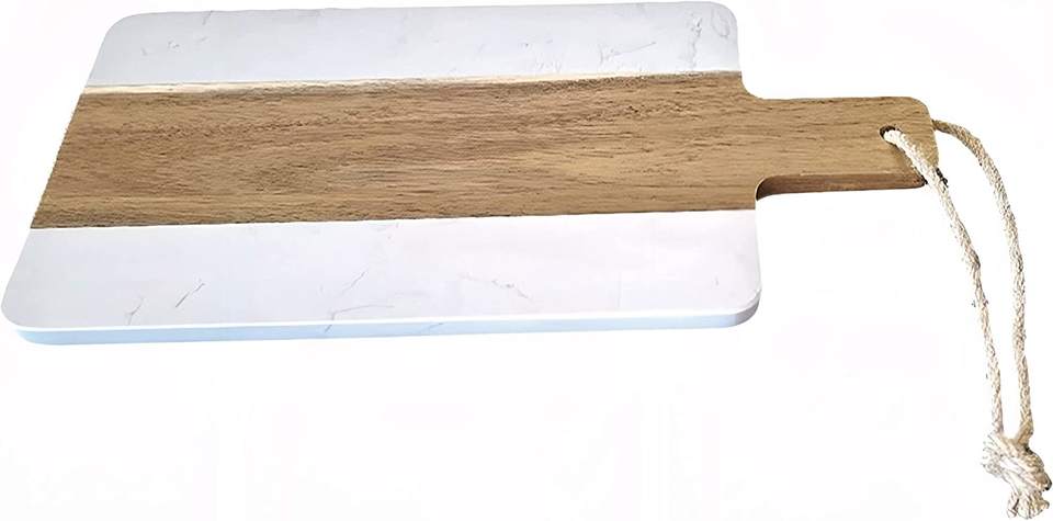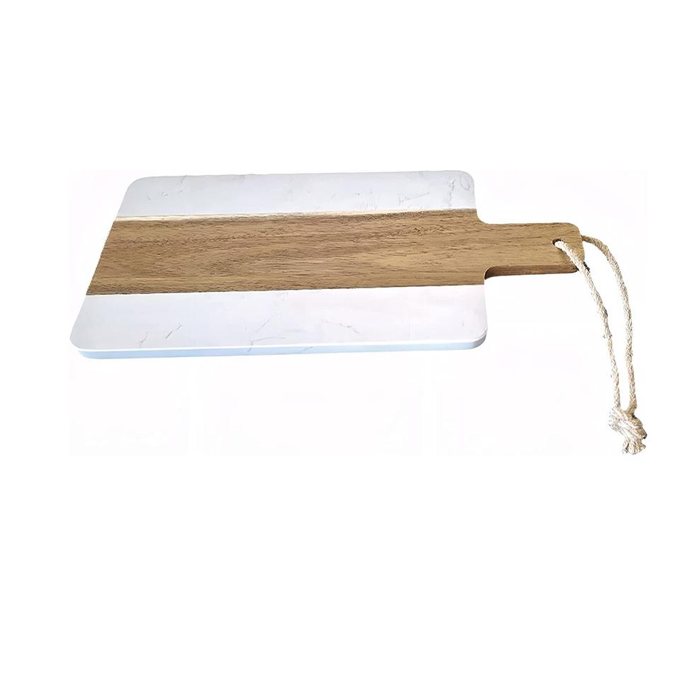 Handmade Acacia Wood White Marble Charcuterie Cheese Board with Handle & Jute Rope Home Dinner Parties Wholesale Price Dishes