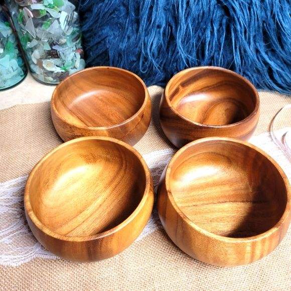 Handmade Acacia Wooden Japanese Bowl for Salad and Rice Serving