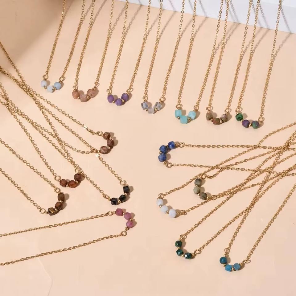 Handmade Adjustable Gold Plated Chain Necklace Multi Raw Gemstone Birthstone Fashion Jewelry