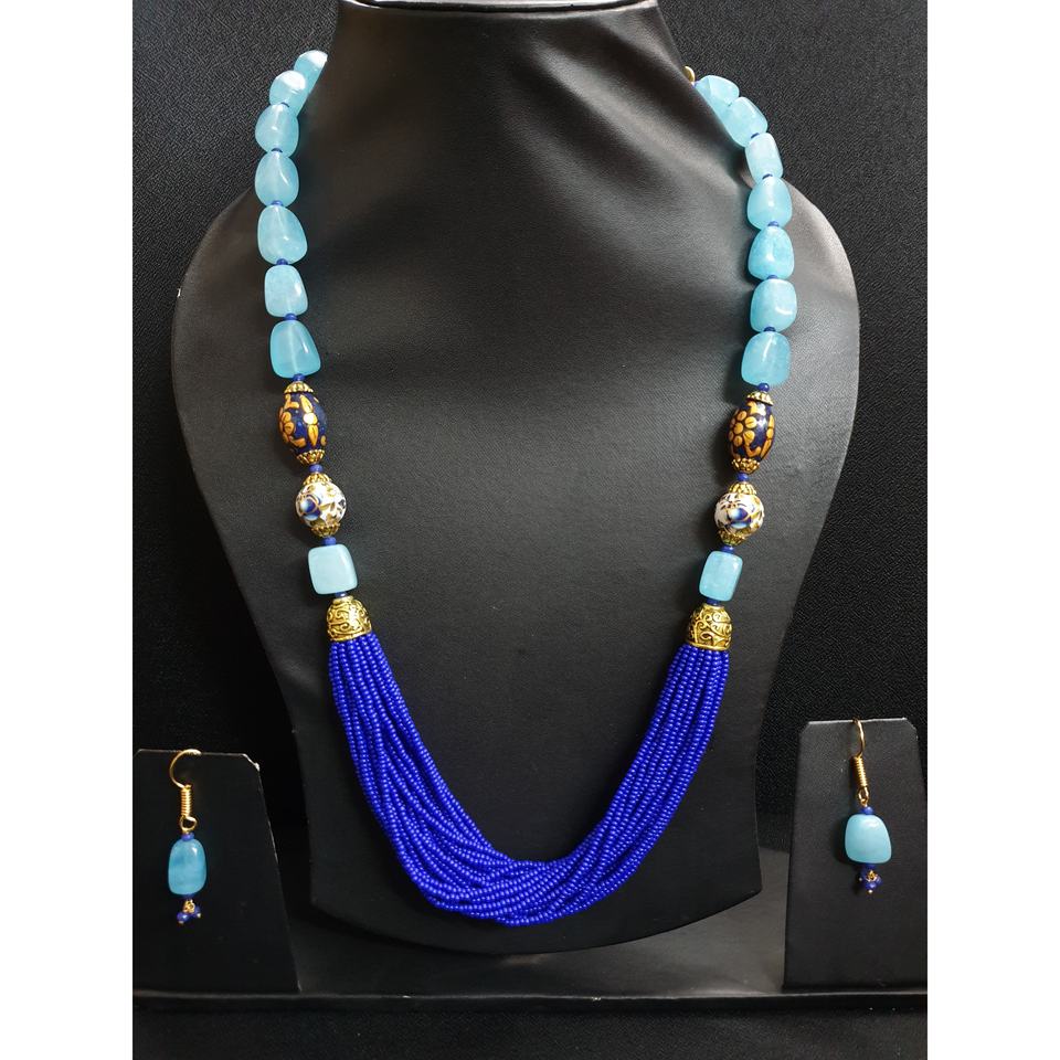 Handmade African Beaded Jewelry Set Blue Bead Necklace and Earring Set for Women Ethnic Tribal Statement Jewelry for Women