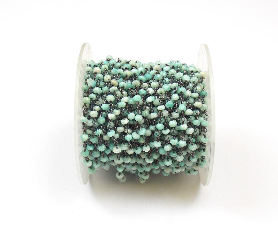Natural Amazonite Handmade Black Rhodium Beaded Rosary ChainMaterial