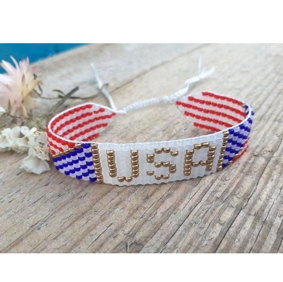 Handmade American Flag Seed Beads Bracelet for Independence Day Custom USA Red White Blue Beaded Bracelet 4th of July Jewelry