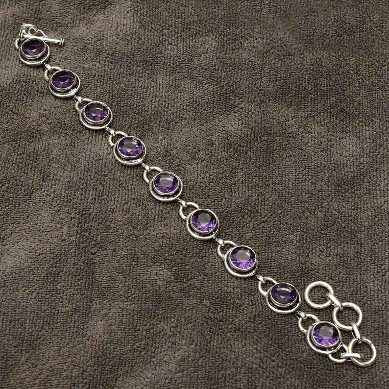 Handmade Amethyst Bracelet 925 Sterling Silver Gemstone Jewelry 7 Inch Elegant Gift For Women Girls Fashion Accessories