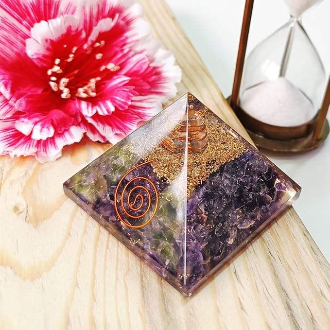 Handmade Amethyst Gemstone Orgone Pyramid Positive Energy Crystal for Reiki & Home Decor Semi-Precious Stone Craft