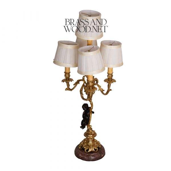 Handmade Antique Brass Table Lamp with Marble Base and Fabric Shades Decorative Lighting for Luxury Home Decor