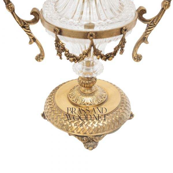 Handmade Antique Brass and Crystal Table Lamp with Fabric Shade Decorative Lighting for Luxury Home Decor