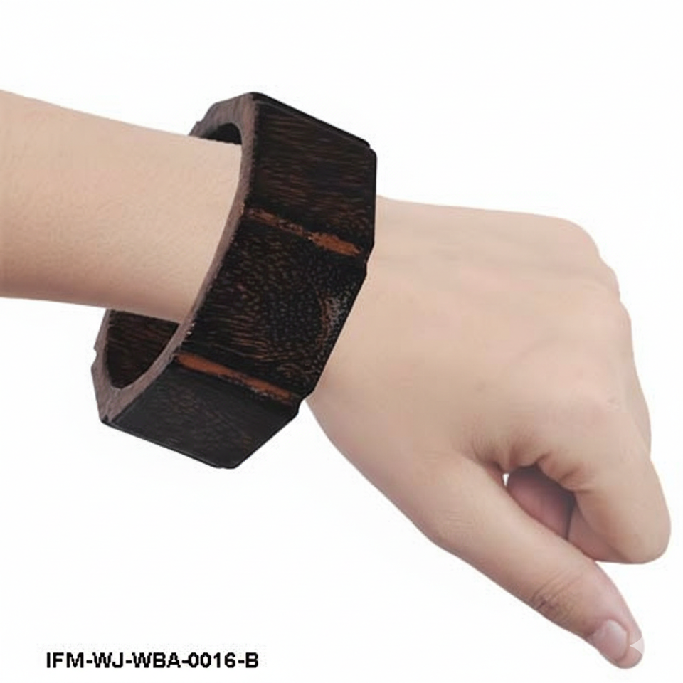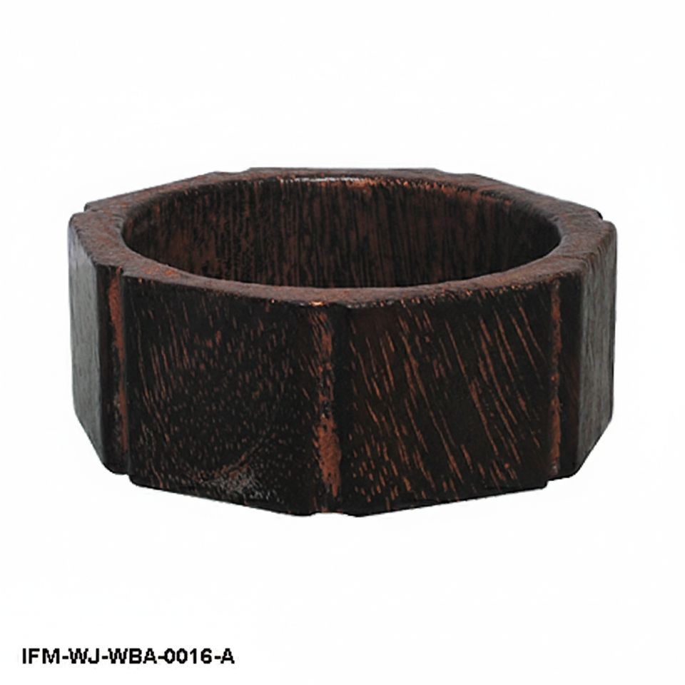 Handmade Antique Dark Wood Octagonal Bangle Chunky Boho Statement Bracelet Natural Rustic Timber Wristwear - Gift for Her