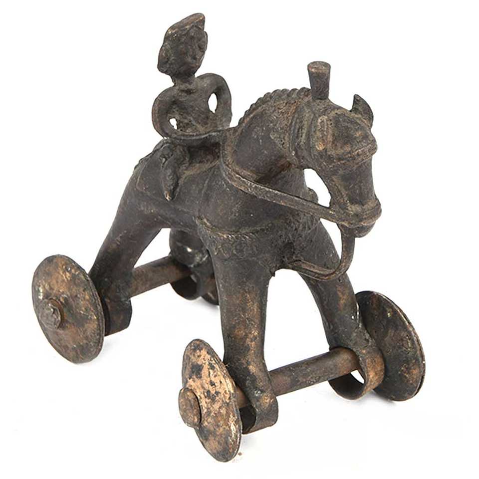 Handmade Antique Gold Brass India Temple Toy Horse Rolling Wheels Sculptures Figurine Statue Statement Pieces Decor Gift Items