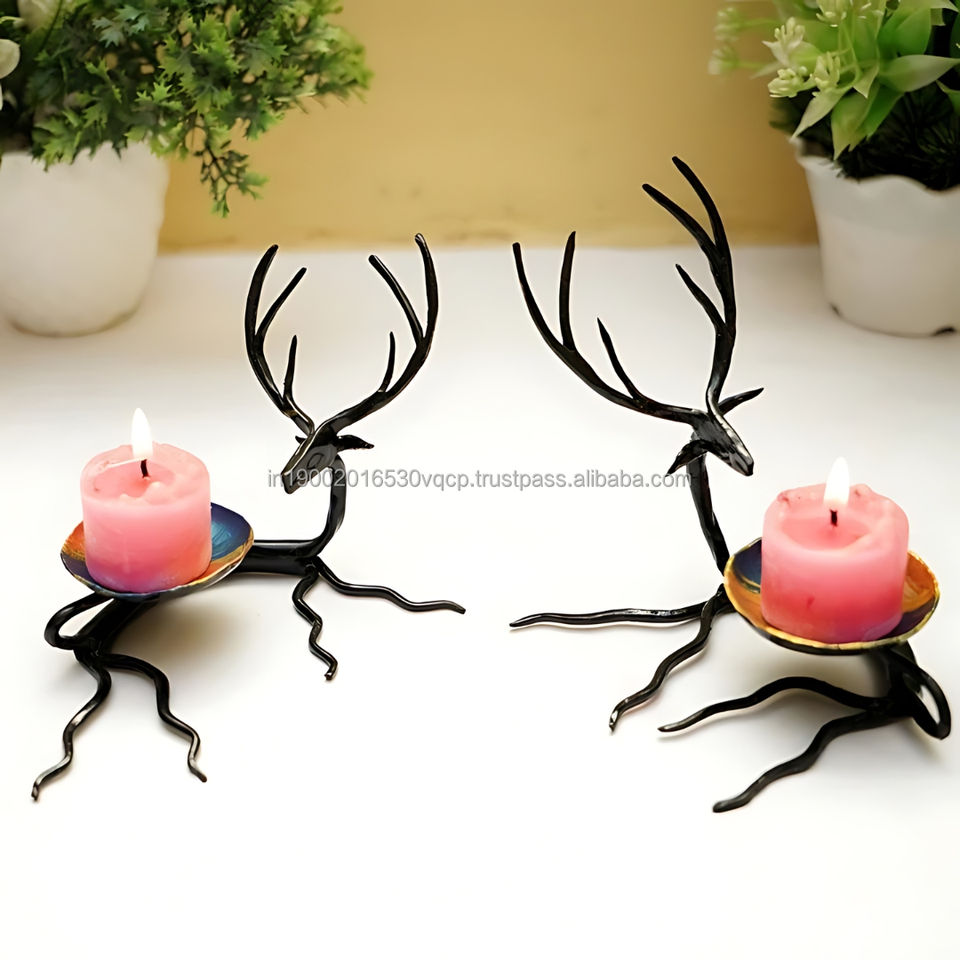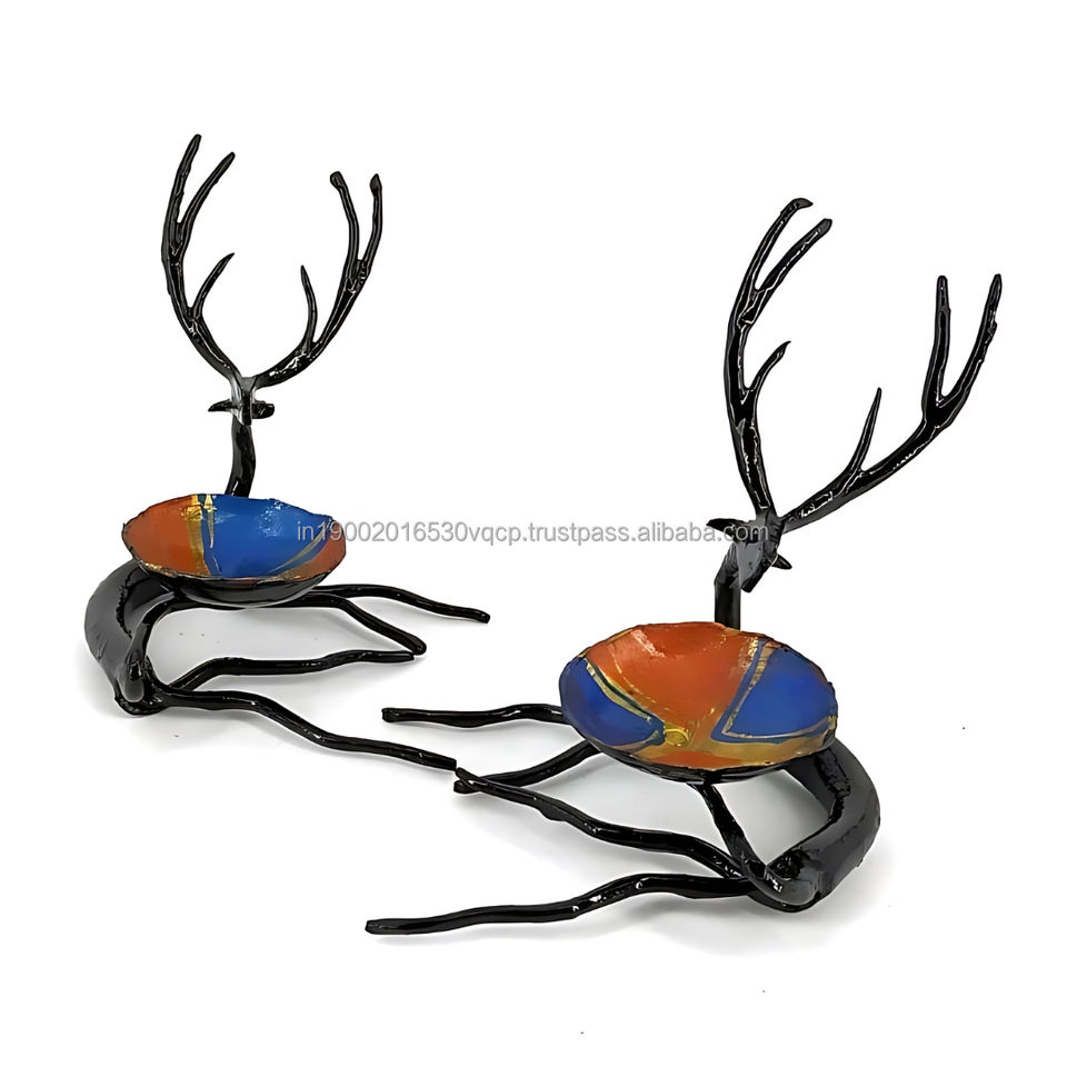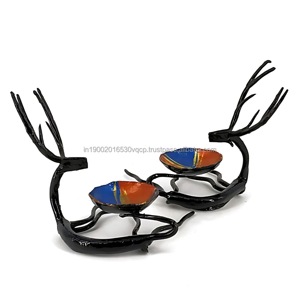 Handmade Antique Reindeer-Shaped Iron Candle Holder Creative Traditional Home Decor Inspired Indian Traditions Unique Tribal Ins