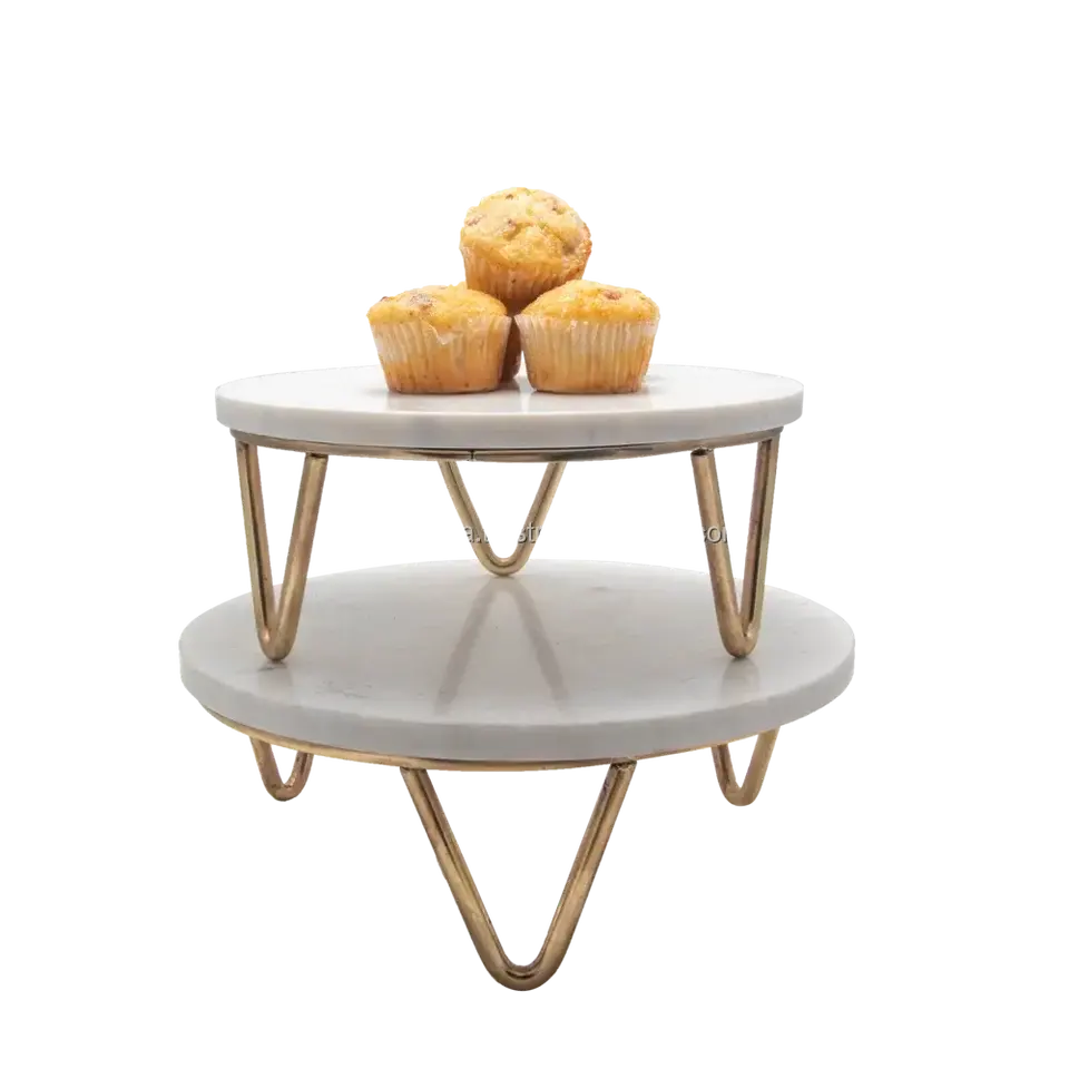 Handmade Antler Shape Gold White Marble Cake Stand and Tray Premium Quality for Wedding Party Cakes Pastries and Home Decor