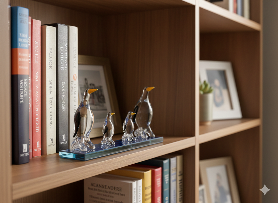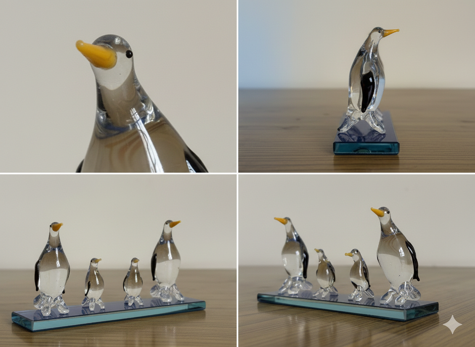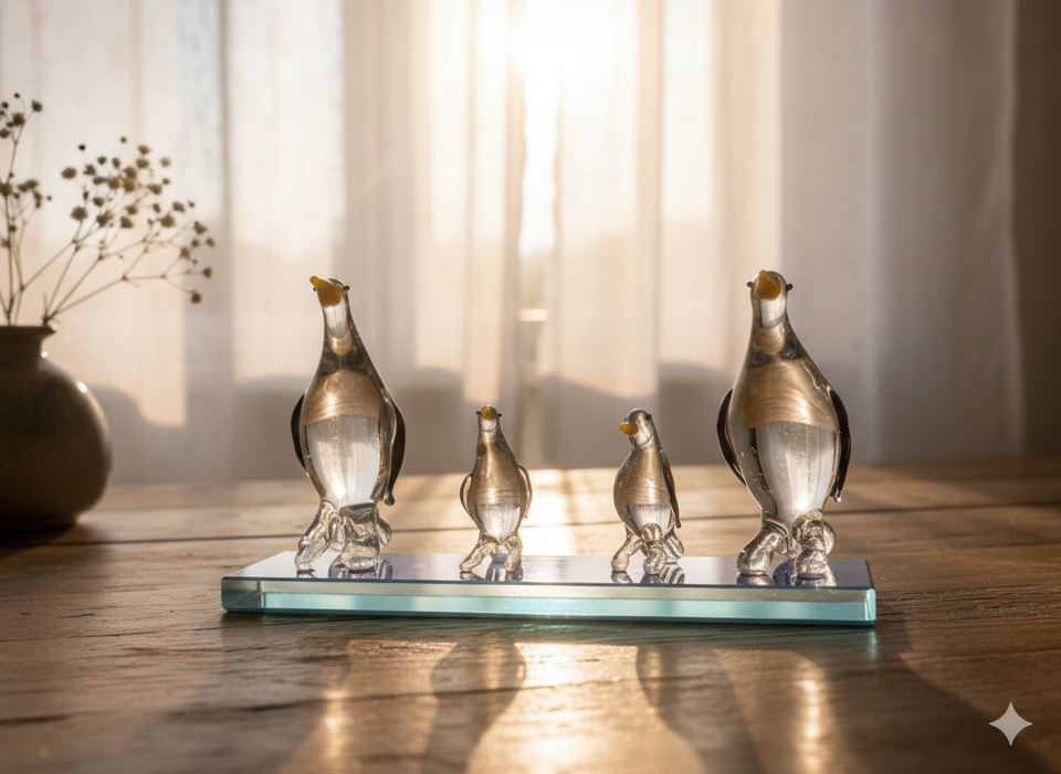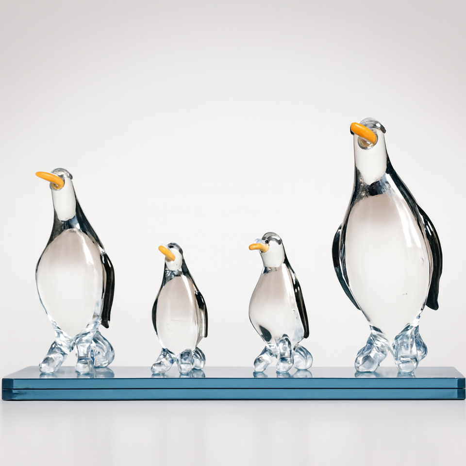 Handmade Art Deco Glass Penguin Family Figurine Luxury Home Decor Gift Showpiece Wedding Anniversary Valentine Export Table