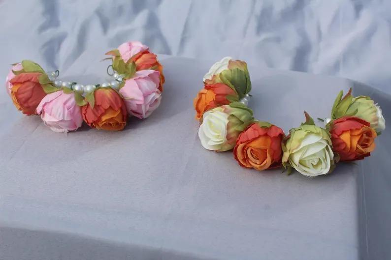 Handmade Artificial Rose Flower Gajra For Women Wrist Band /Hand Corsage/Floral Bracelet for , Nikkah, Mehndi & Festive Wear