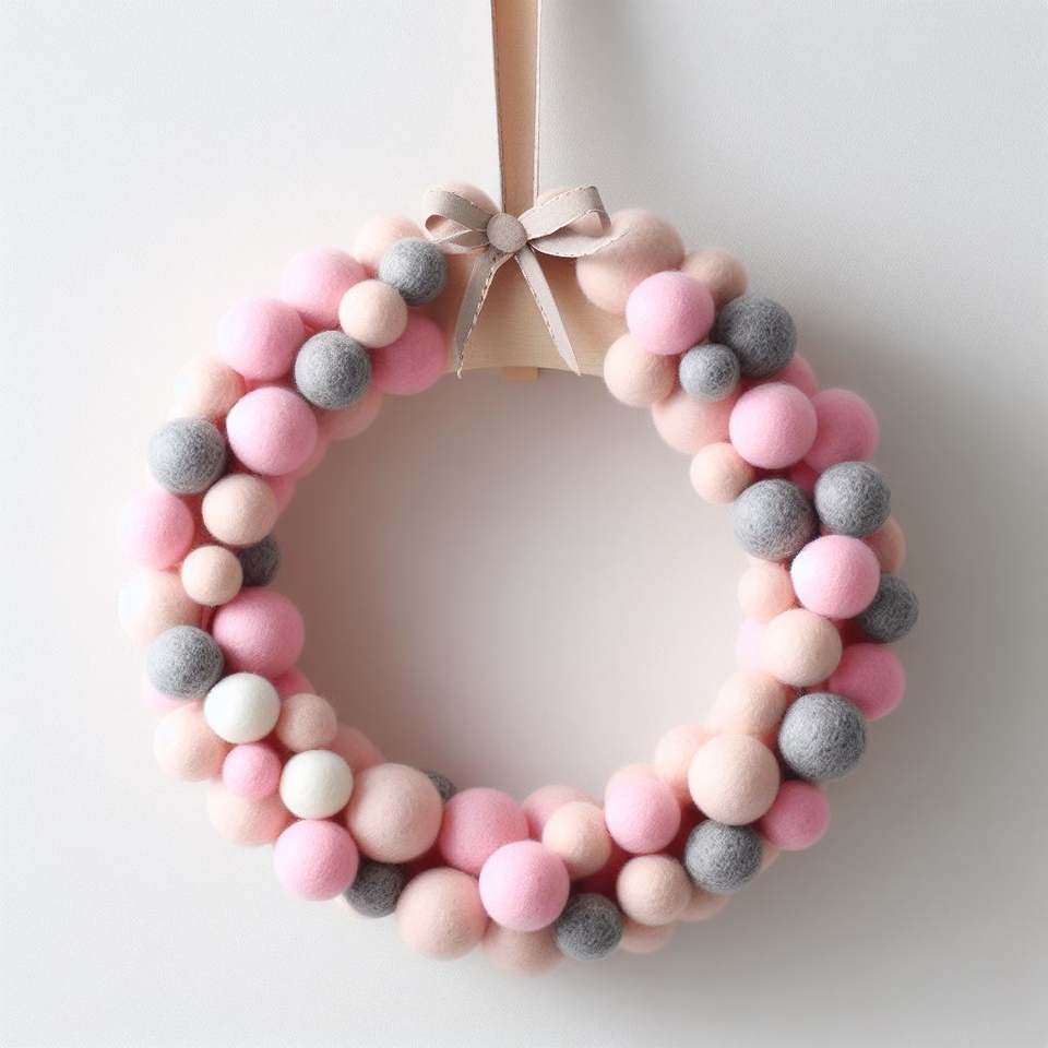 Handmade Artisan-Crafted Felt Ball Wreath Sustainable and Stylish Seasonal Decor