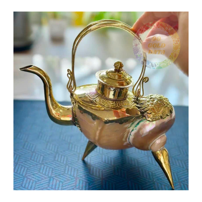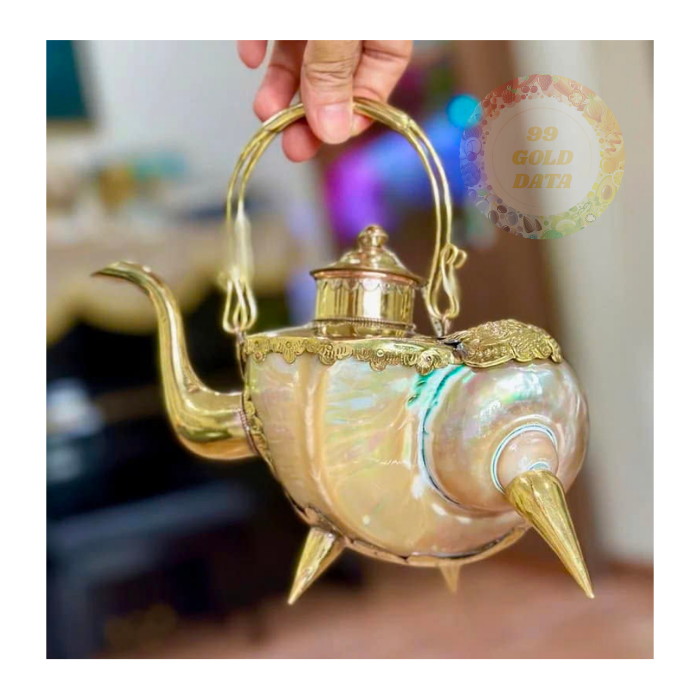 Handmade Artisan Mother of Pearl Teapot and Shell Cup Set Luxury Nautical Tea Set for Beachfront Villas