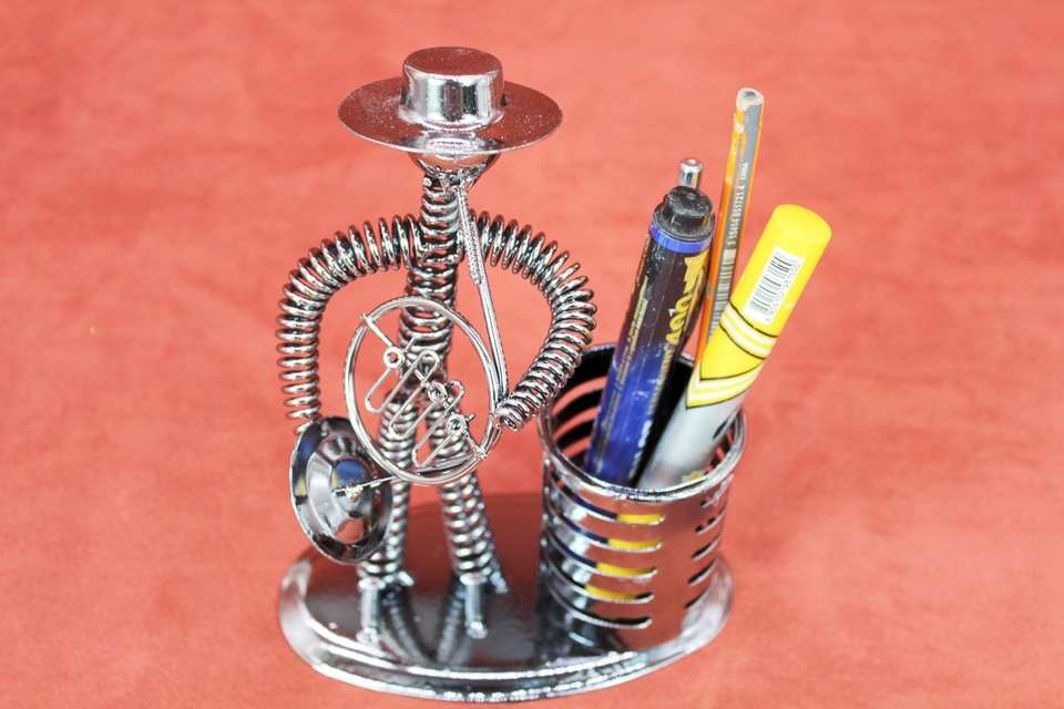 Handmade Artistic Metal Man Man of Steel Knight Pen Holder Stand Custom Colours Available Desk Organizer Usage