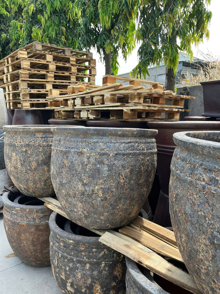 Handmade Atlantis Clay Garden Tall Pots Aged Ceramic Planters for Balcony Patio & Yard for Flower Displays