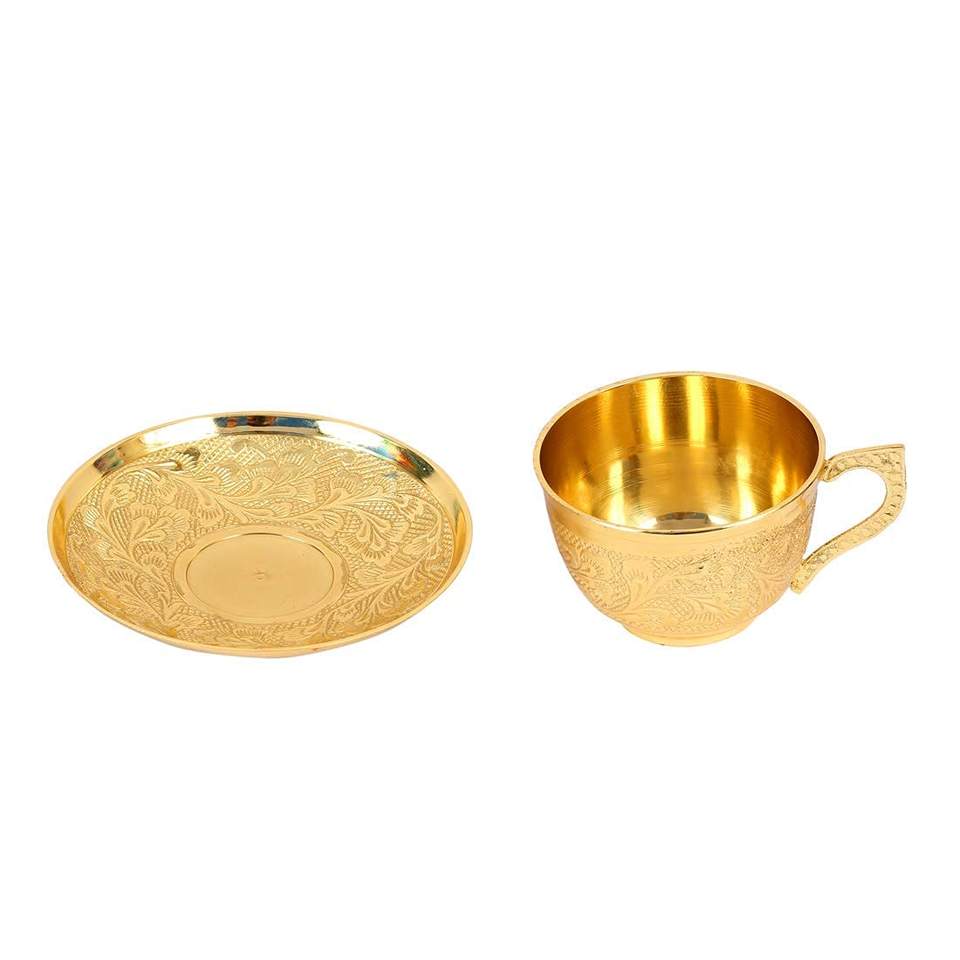 Handmade Attractive Design Tea Cup and Saucer Pure Brass Gold Finished Kitchenware Tea Cup Saucer at Cheap Price