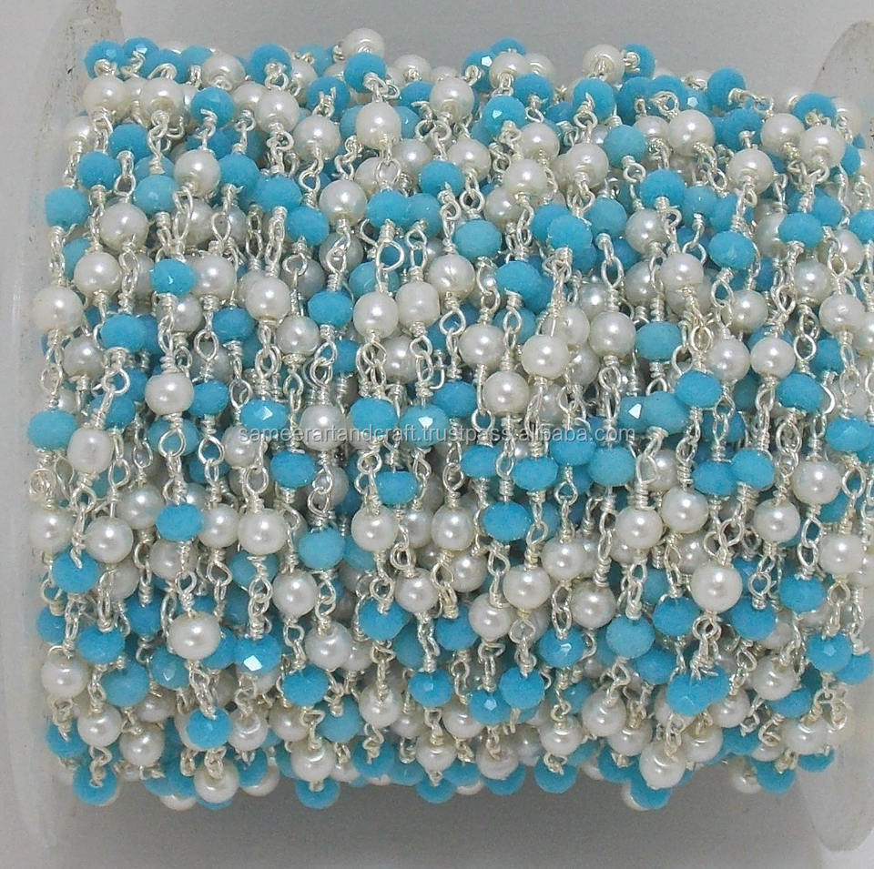 Attractive Turquoise & Pearl Silver Plated Beaded Rosary ChainJewelry Name