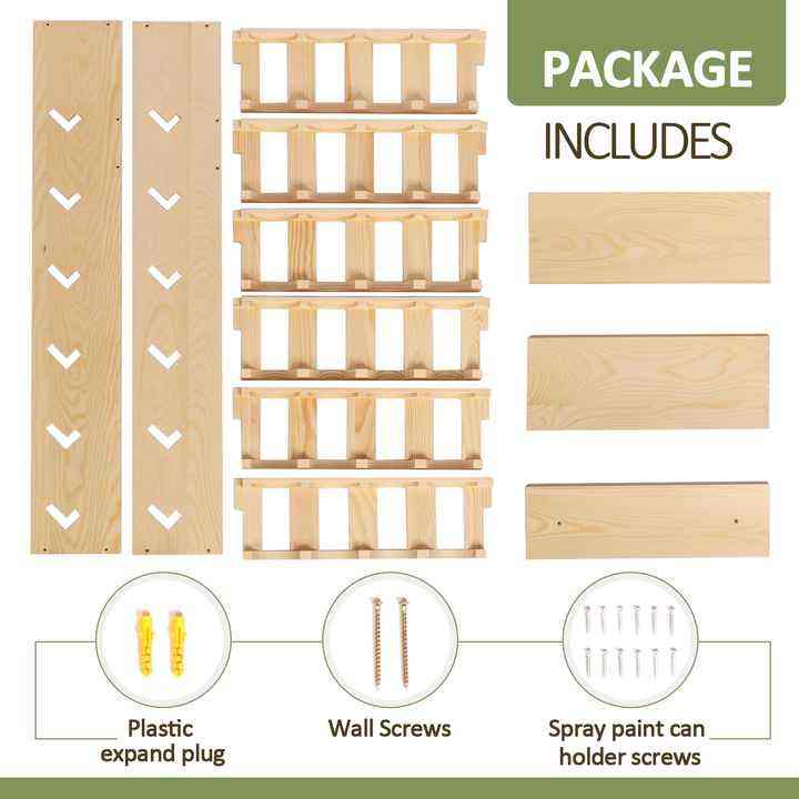 Handmade Bamboo 6-Tier Wall Mount Storage Rack OEM Accepted Holds 24 Spray Paint or Lube Bottles