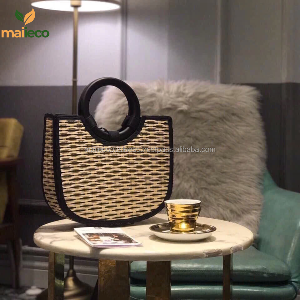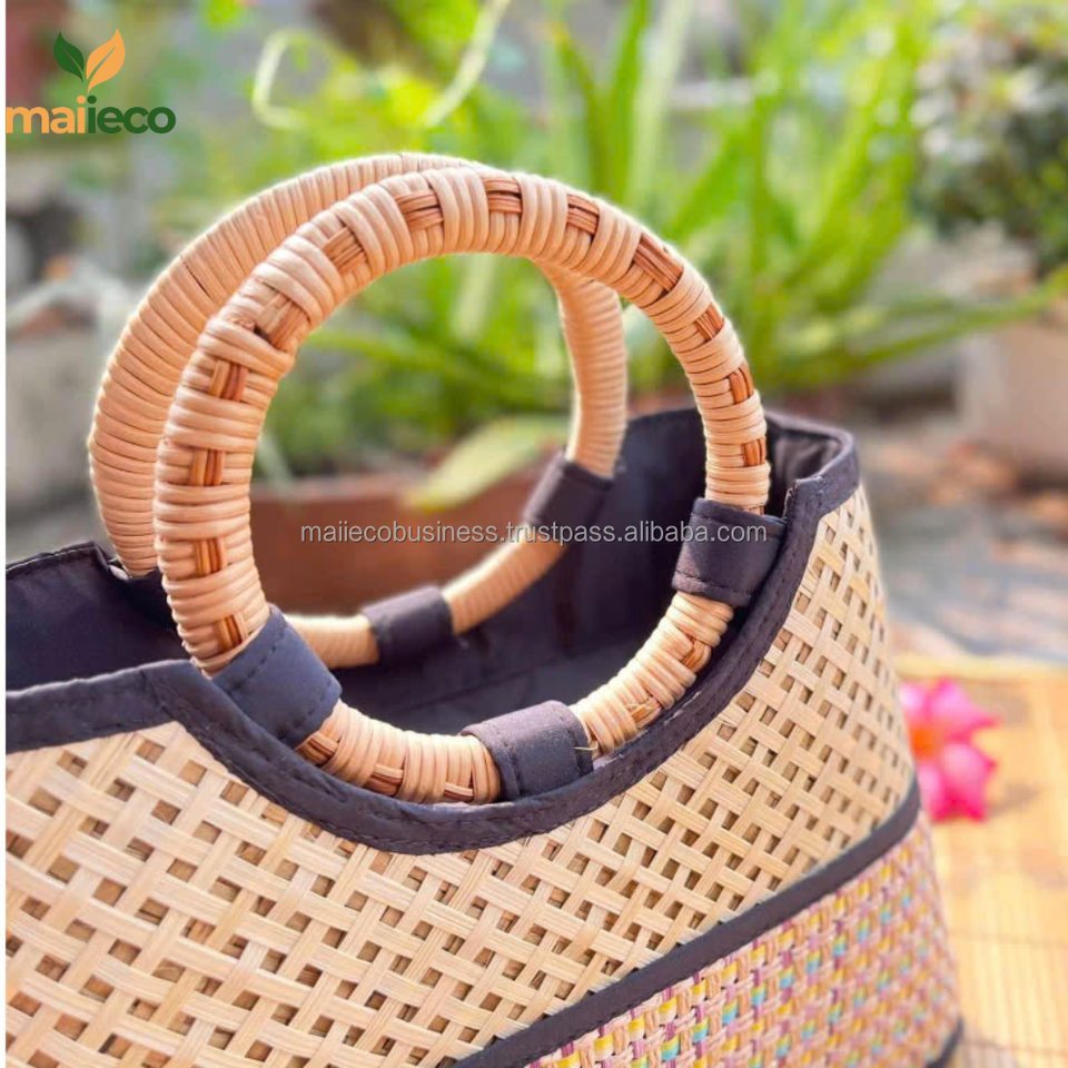 Handmade Bamboo Bag Basket for Women Trendy Design with Unique Knit Stylish Custom Handicraft Good Quality Vietnam Manufacture