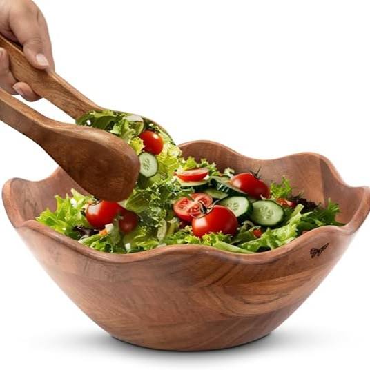 Indian Manufacturer Eco-Friendly Polished Wood Salad Bowl with Spoon & Fork Kitchenware