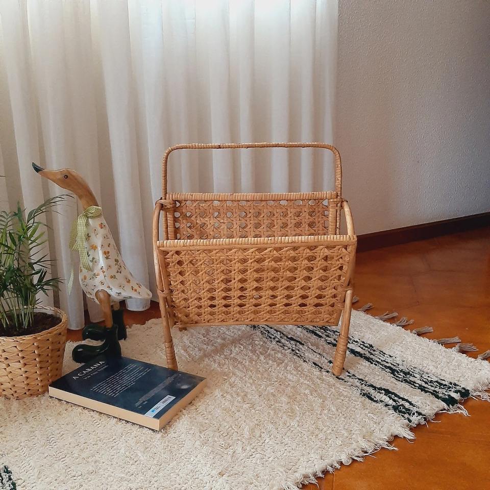 Handmade Bamboo Rattan Magazine Rack with Handle Wicker Magazine Holder Vietnam Handicraft Woven Seagrass Book Storage Basket