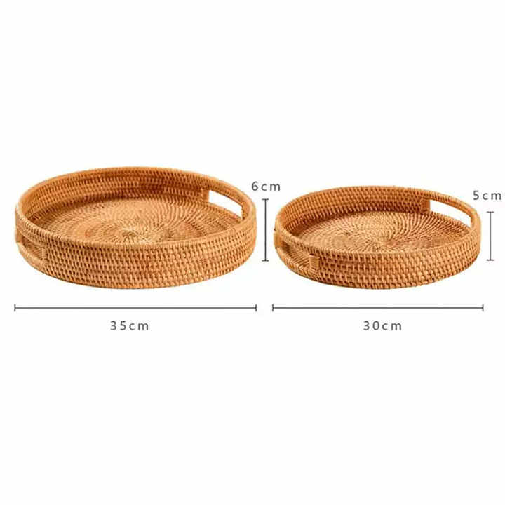 Handmade Bamboo Rattan Snack Trays Light Luxury Small Pastry Plates Natural Woven Storage Tray Wholesale Supply