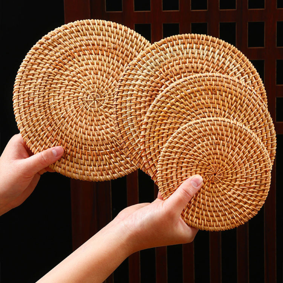 Handmade Bamboo Rattan Wicker Plates From Vietnam Natural Sustainable Flower Design for Tea Coffee Made in Vietnam