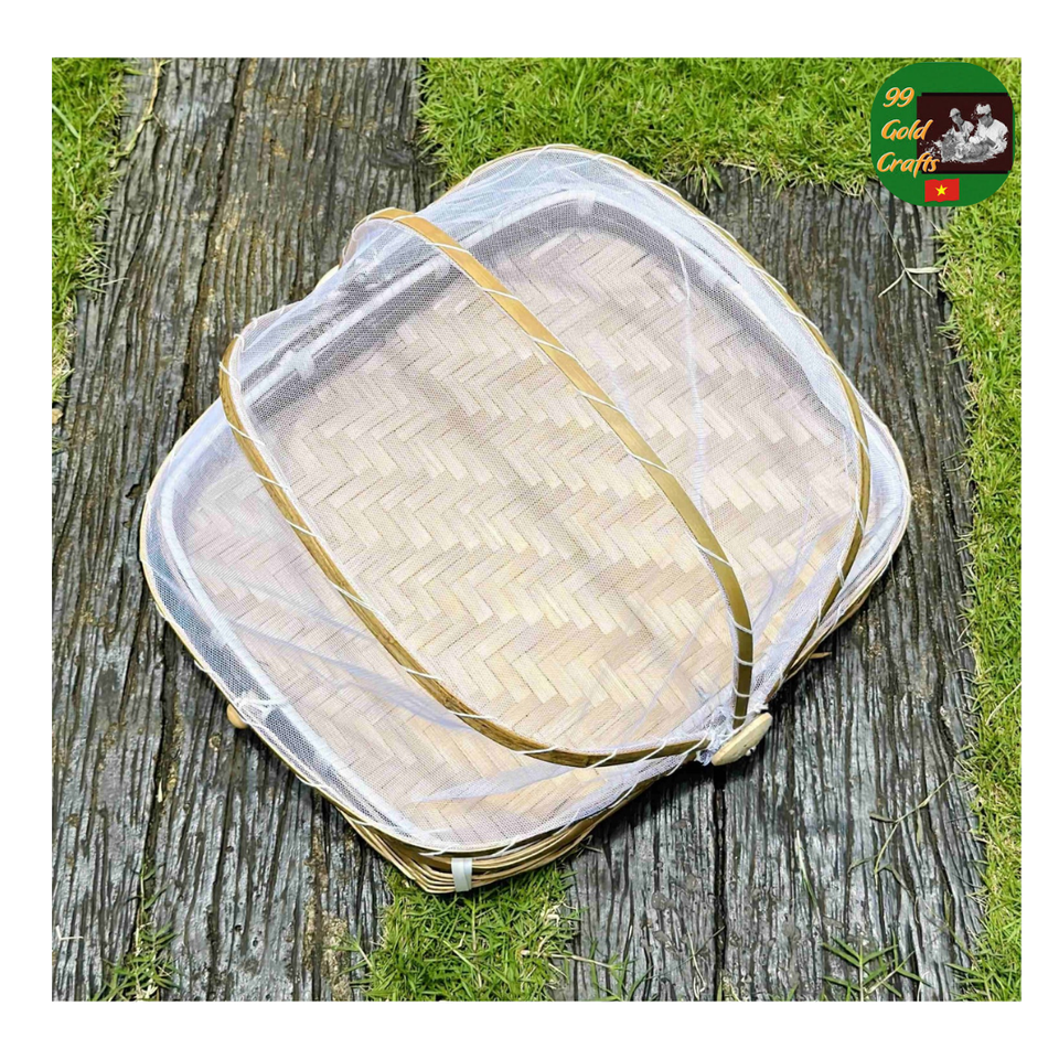 Handmade Bamboo Winnowing Basket Tray, Natural Bamboo Basket Cover for Food Serving and Kitchenware, Bamboo Dome Food Cover