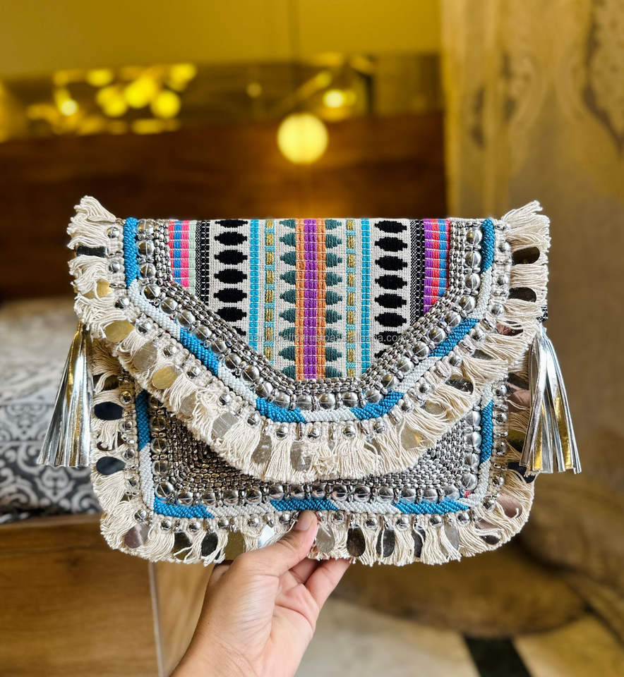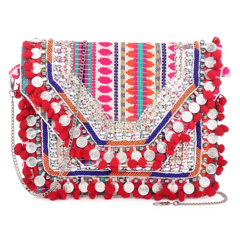 Handmade Banjara Clutch Bag with Classic Ethnic Design Bohemian Style by LUXURY CRAFTS for Fashion Lovers