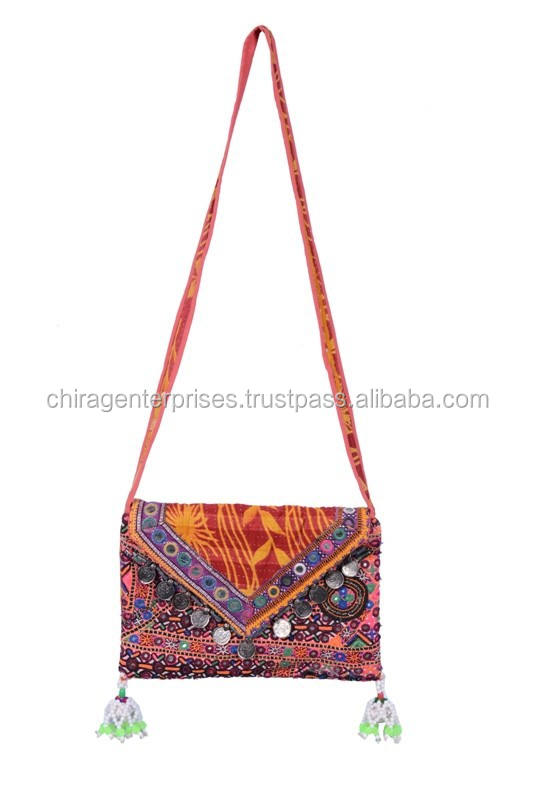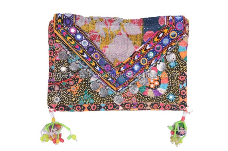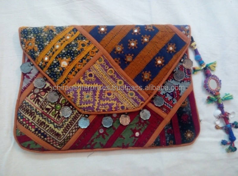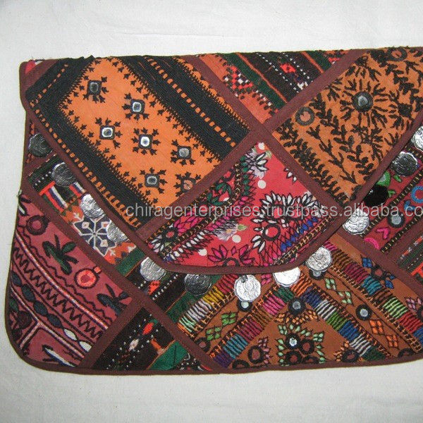Fashion and Accessories India Leather Bohemian Handmade Banjara Traditional Embroidery Women Clutch Bag for Women