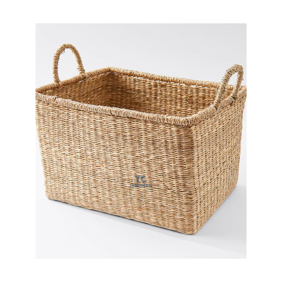 Handmade Basket Straw Storage Bin Seagrass Woven Basket With Handle Rattan Basket Seagrass